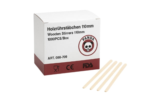 Holzrührstäbchen 110 mm – umweltfreundlich und perfekt geeignet zum Umrühren von heißen und kalten Getränken wie Kaffee, Tee oder anderen Erfrischungen. Hergestellt aus nachhaltigem Holz, sind diese Rührstäbchen stabil und splitterfrei. Ideal für Cafés, Büros und den privaten Gebrauch, bieten die 110 mm langen Stäbchen eine angenehme Handhabung und passen in nahezu jede Tasse oder jeden Becher. Entscheiden Sie sich für eine umweltbewusste Alternative zu Plastik und sorgen Sie für ein natürliches Rührerlebnis!