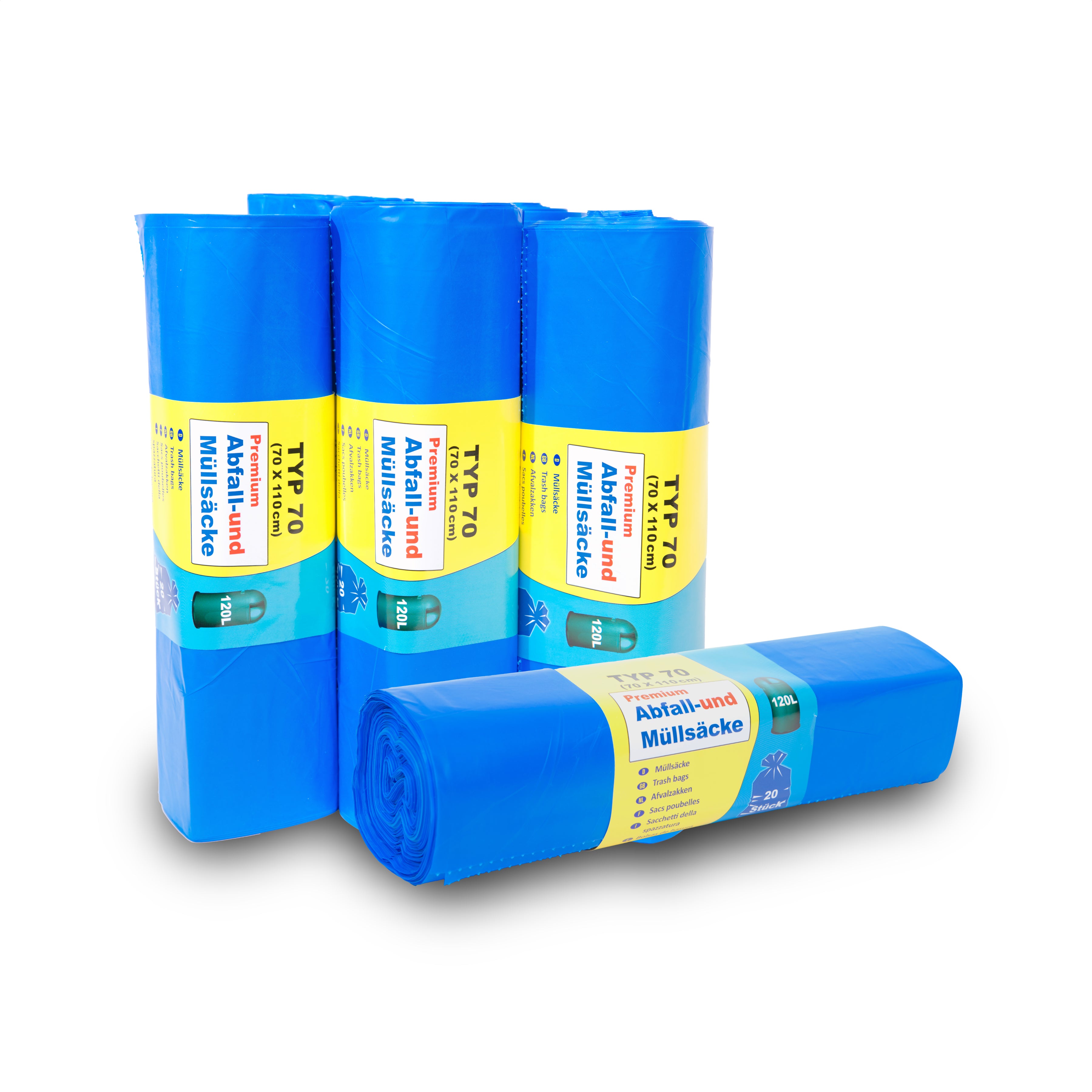 Großes Fassungsvermögen Mit einem Volumen von 120 Litern bieten diese blauen Müllbeutel ausreichend Platz für großen Abfall und sorgen für eine saubere Entsorgung.